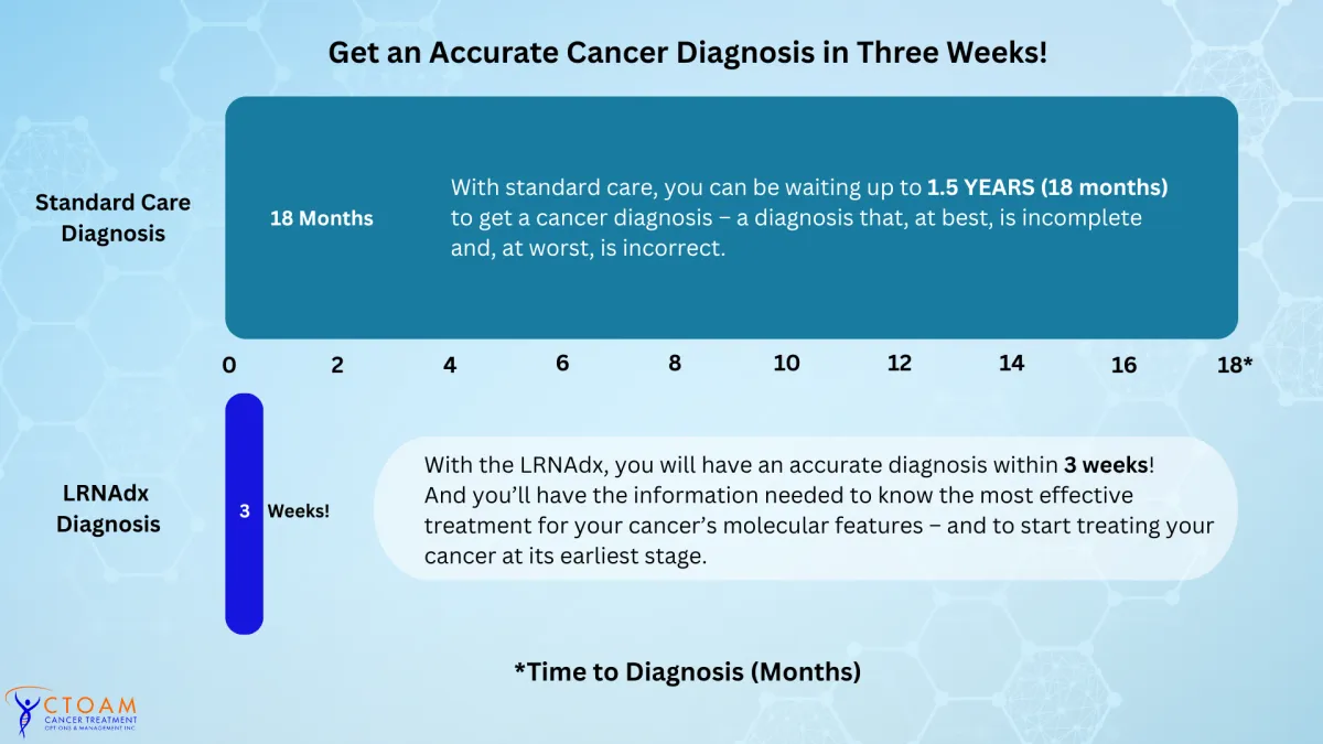 With the LRNAdx, you will receive an accurate diagnosis, and critical information about the molecular features of your cancer, within 3 weeks!